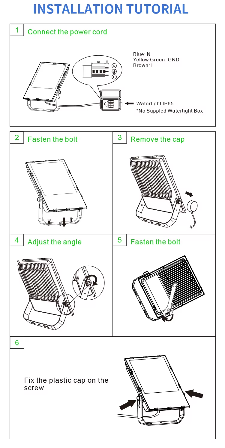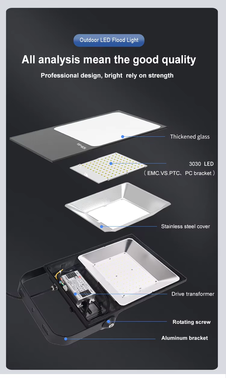 · Wide Range of Power Options: Available in 5 power options (50w, 100w, 150w, 200w, and 300w,), this flood light can be chosen according to your specific lighting needs, from small to large areas.